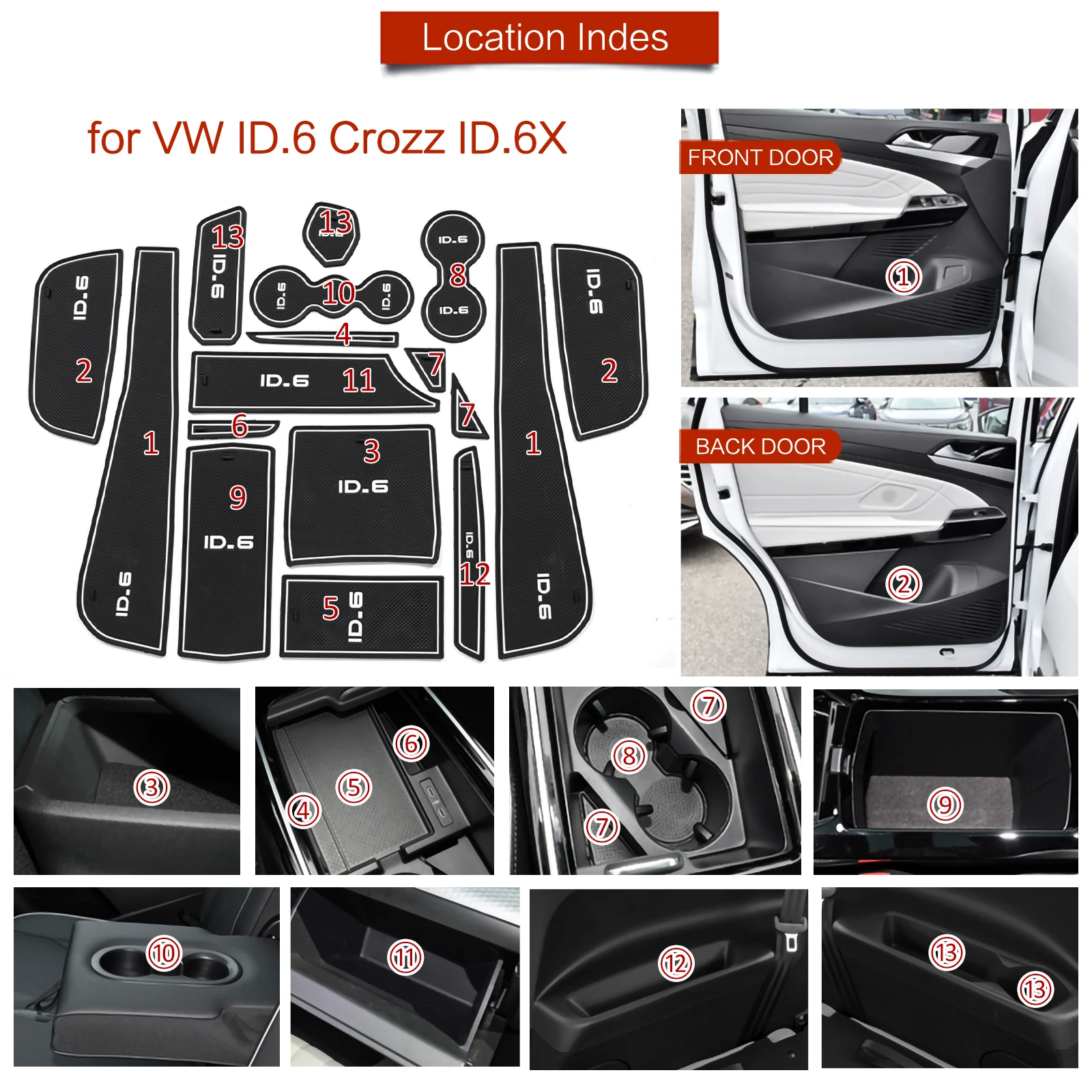 - ► Compatible with VW ID.6 ID6 X Crozz ID6X Door Groove Gate Pad Door Cup Arm Box Storage Mat Pad .